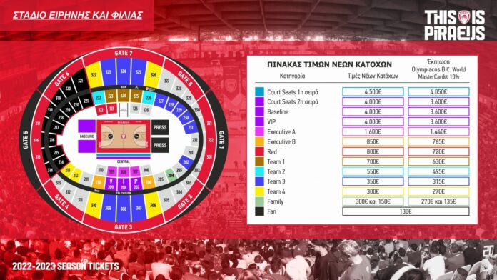 Η ΚΑΕ Ολυμπιακός ανακοίνωσε πως, λόγω της πολύ μεγάλης ζήτησης στα εισιτήρια διαρκείας και της εξάντλησης αρκετών θέσεων, θα ανοίξει προς διάθεση νέα τμήματα