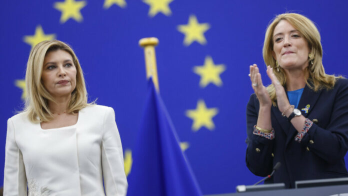 “Είναι τεράστια τιμή να έχουμε την Ολένα Ζελένσκα μαζί μας αυτή τη σημαντική ημέρα”, δήλωσε η πρόεδρος του Ευρωκοινοβουλίου, Ρομπέρτα Μετσόλα.