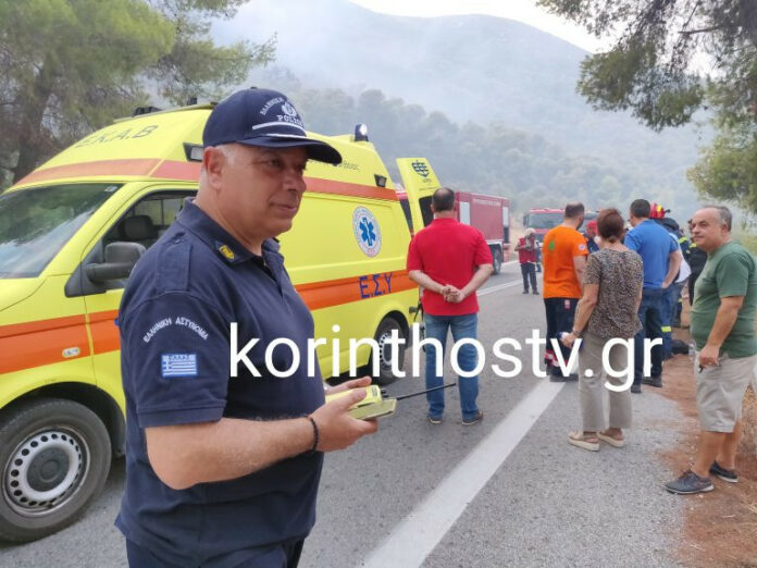 Ο πυροσβέστης μεταφέρθηκε με ασθενοφόρο στο Νοσοκομείο Κορίνθου αναφέρει το korinthostv.gr