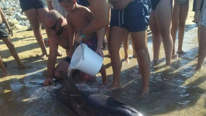 Ένα τραυματισμένο δελφίνι βγήκε στην παραλία πίσω από τις κατασκηνώσεις του Κοκκίνη Χάνι, κινητοποιώντας τους λουόμενους που έκπληκτοι το είδαν να “παλεύει” στα βράχια, αναφέρει το cretalive.gr.