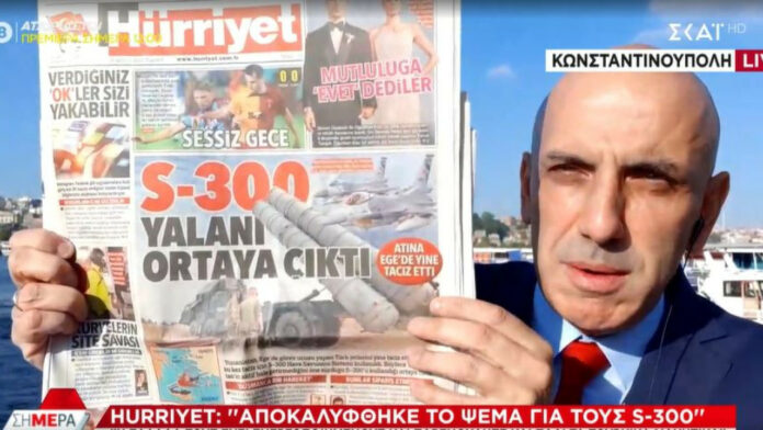 Η Hurriyet στο πρωτοσέλιδό της αναφέρει ότι «αποκαλύφθηκε το ψέμα για τους S-300» σημειώνοντας ότι η Ελλάδα τους έχει ενεργοποιημένους και παρενόχλησε και πάλι τα τουρκικά μαχητικά.