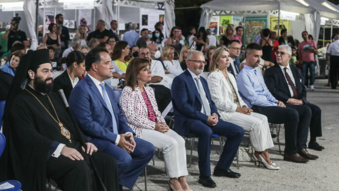 Εγκαινιάζοντας το Φεστιβάλ Βιβλίου, το οποίο φέτος περιλαμβάνει αφιερώματα στα 100 χρόνια από τη Μικρασιατική Καταστροφή, καθώς και στο έργο του σπουδαίου Ιάκωβου Καμπανέλλη, θέλω να συγχαρώ κατ’ αρχάς τον Σύνδεσμο Εκδοτών Βιβλίου. Να συγχαρώ επίσης το υπουργείο Ανάπτυξης και Επενδύσεων για τη συνδιοργάνωση αυτής της όμορφης γιορτής, το υπουργείο Πολιτισμού και Αθλητισμού, το Ελληνικό Ίδρυμα Πολιτισμού, το Επαγγελματικό Επιμελητήριο Αθηνών, τον Οργανισμό Πολιτισμού Αθλητισμού και Νεολαίας του δήμου Αθηναίων και όλους όσους εργάστηκαν για να φτάσουν χιλιάδες βιβλία από τις αποθήκες στους πάγκους των περιπτέρων, δίνοντάς μας τη χαρά να τα φυλλομετρήσουμε, να τα συζητήσουμε, να τα αγοράσουμε και να τα διαβάσουμε, ενεργοί συμμέτοχοι μιας συναρπαστικής περιπέτειας».