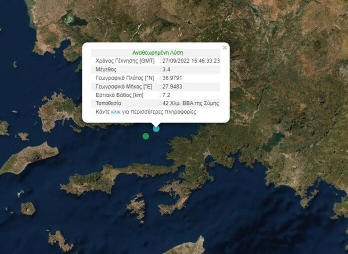 Ο δέυτερος σεισμός είχε μέγεθος 3,6 Ρίχτερ και το επίκεντρό του εντοπίστηκε στα 36 χιλιόμετρα βόρεια της Σύμης.