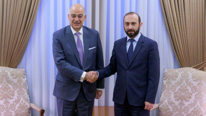 Σαφές μήνυμα στις αναθεωρητικές χώρες, ότι «οι ρεβιζιονιστικές πολιτικές θα αποτύχουν», έστειλε από το Ερεβάν ο υπουργός Εξωτερικών Νίκος Δένδιας κατά τη διάρκεια των κοινών δηλώσεων με τον Αρμένιο ομόλογό του Αραράτ Μιρζουάν. «Για να αναφέρουμε μια ρεβιζιονιστική δύναμη, η Τουρκία προσπαθεί να εκμεταλλευτεί την πρόσφατη αναταραχή για να υπονομεύσει την ειρήνη και τη σταθερότητα, είτε είναι στον Καύκασο είτε στο Αιγαίο» υπογράμμισε χαρακτηριστικά ο Νίκος Δένδιας.