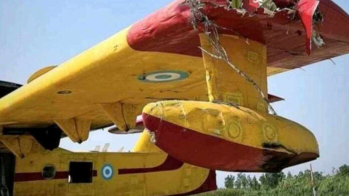 Φωτογραφία ντοκουμέντο από το χτυπημένο φτερό του Canadair έφερε στη δημοσιότητα ο ΣΚΑΪ. Το αεροσκάφος επιχείρησε νωρίτερα χαμηλή πτήση στη φωτιά στη Ναυπακτία, με συνέπεια να χτυπήσει σε πεύκο.