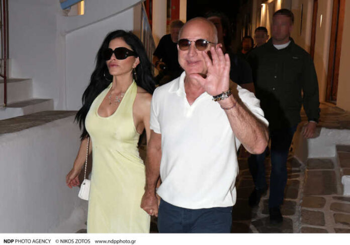 Στα Ματογιάννια της Μυκόνου απαθανατίστηκαν ο κροίσος Τζεφ Μπέζος και η αγαπημένη του Λόρεν Σάντσεζ που απολαμβάνουν τις διακοπές τους στο δημοφιλές νησί.