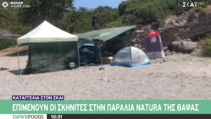 Καταγγελία στον ΣΚΑΪ: Επιμένουν οι σκηνίτες στην Natura παραλία Θαψά