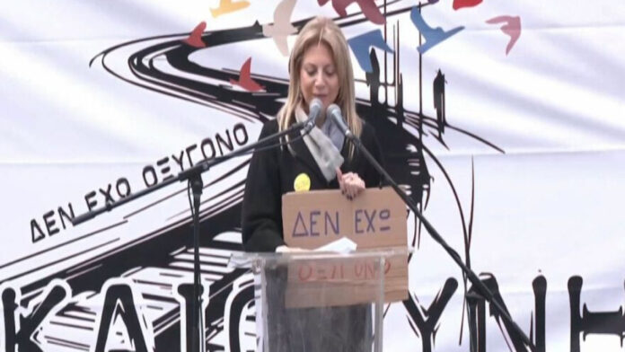 «Στις 28 Φλεβάρη του 2023 ξημέρωσε για 57 οικογένειες, αλλά και για τις οικογένειες σε όλη την Ελλάδα, η μέρα που συγκλόνισε και πάγωσε την ύπαρξή μας. Για όσους είχαμε τα παιδιά μας στο τρένο, ένα μέρος της ψυχής μας έμεινε εκεί και δεν θα επιστρέψει ποτέ. Μέσα στον αλόγιστο πόνο και την ασύλληπτη πραγματικότητα, κανείς δεν μπορούσε να φανταστεί τι αρχίζει. Από την πρώτη στιγμή σε αυτόν τον Γολγοθά στέκονται μόνιμοι φύλακες αυτές οι 57 ψυχές, αυτές μας καθοδηγούν», δήλωσε από το βήμα της συγκέντρωσης η κ. Καρυστιανού.
