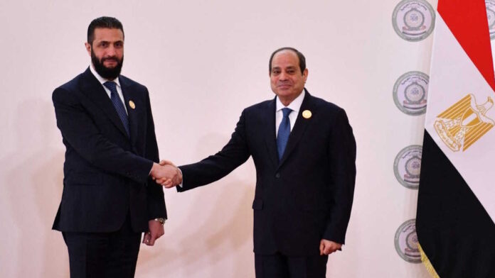 Ο Αχμέντ αλ Σάρα, ο οποίος έγινε δεκτός από τον Άμπντελ Φατάχ αλ Σίσι στο Κάιρο, προσπαθεί να εξασφαλίσει υποστήριξη από ηγέτες αραβικών κρατών και της Δύσης αφότου ηγήθηκε συμμαχίας ανταρτών που ανέτρεψε τον Πρόεδρο της Συρίας, Μπασάρ αλ Άσαντ, τον Δεκέμβριο του 2024.