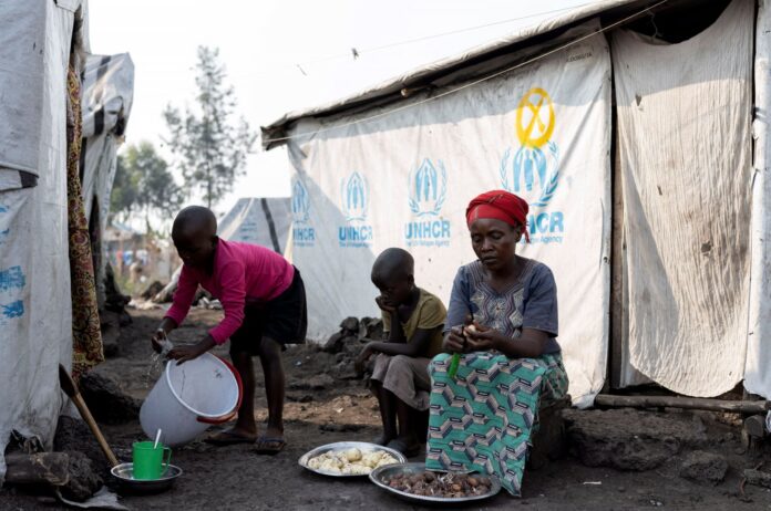 Μητέρα και γιος σε καταυλισμό εκτοπισμένων στη Muja μόλις έχουν αναρρώσει από τον Mpox